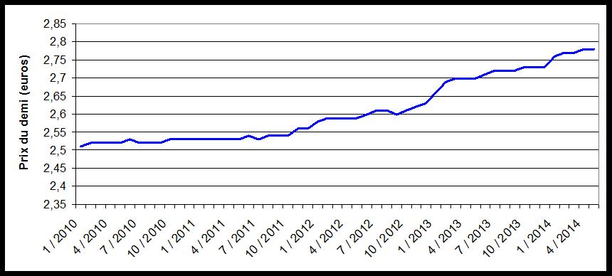 Juin 2014 – Intéressant, l’impact de la vague de fiscalité, non ?  (source INSEE)prix biere