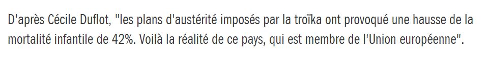 Cécile Duflot, dans une diatribe contre la troika et son diktat économique en Grèce, assène l’argument choc :