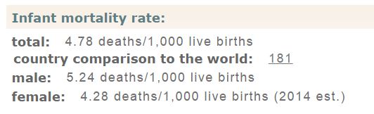 Info bonus de la CIA : les bébés filles sont bien plus résistants que les garçons … Pas juste, mais c’est la vie … si je peux dire . L’écart d’espérance de vie entre les sexes se construit dès la naissance.