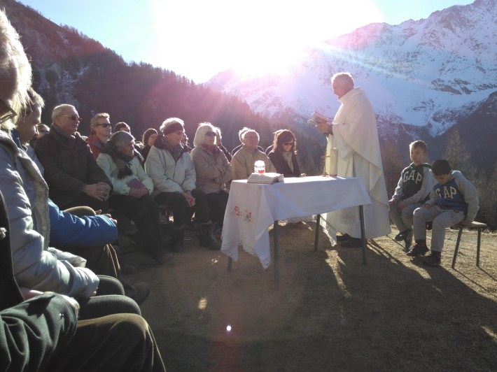 Aujourd’hui, le ciel est clément, le soleil généreux. La messe de la Sainte Famille aura lieu dehors.