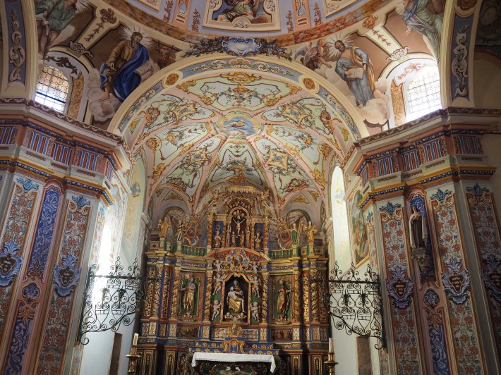 On baisse la tête pour entrer. Immédiatement, le retable attire l’œil.