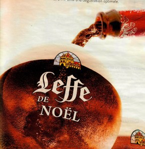 Mais là où je me marre vraiment, c’est en ouvrant le courrier International du jour : et hop, Leffe invente le verre marqué “Leffe de Noël” . Pour y boire la Leffe d’hiver ? Pour corriger la bourde marketing précédente ? Là, les amis, vous vous prenez les pieds dans le tapis.