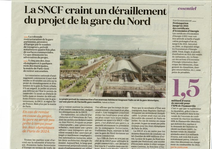 - 600 millions pour agrandir la gare du Nord ? Projet retoqué, grave erreur urbaine, offense aux voyageurs .. selon Jean Nouvel … Et en plus, la SNCF est déjà bien trop endettée. Et on passera seulement de 700 000 à 900 000 voyageurs en 2030..
