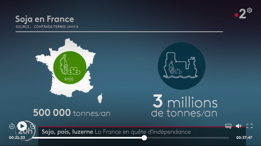 Notre bétail est en effet nourri avec des protéines produites au Brésil………..ce soja que nous importons souvent du Brésil provient de cultures intensives. Elles sont souvent la cause de la déforestation en Amazonie.”