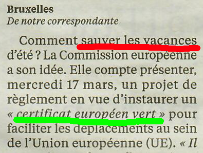 Mon quotidien m’estomaque. Le jour même ou l’on saque le (seul) patron humain du CAC 40, on saque sacre les nouveaux khmers verts: les défenseurs du voyage aérien. En créant un passeport vert, qui permet aux plus polluants méritants de reprendre l’avion pour sauver les vacances. Pas leurs vacances, mais les vacances, celles de l’humanité …