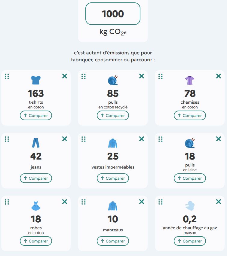 10 tonnes annuelles d’équivalent Carbone pour chaque français. Qu’il faut diviser par 5 dans les quelques décennies à venir. Bon. So what ? Avec une tonne, je mets quoi ? Impactco2.fr m’a aidé a faire quelques comparaisons. Rigolotes. Pour une tonne d’émission d’équivalent CO², je me paie …