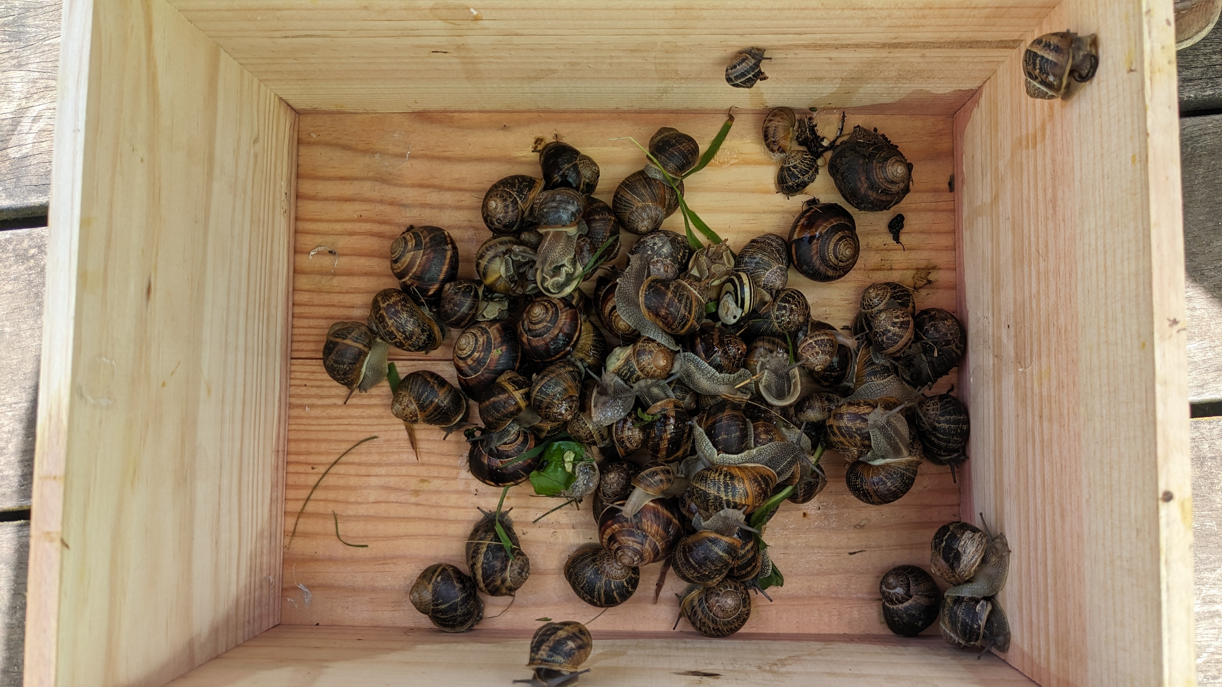 Ces escargots sont maudits. Ils ravagent les roses trémières, les salades, et même mes plantations de pommes de terre et de haricots. Les coupables n’ont pas vraiment les moyens de s’enfuir à tire d’aile. Ils sont facilement retrouvés.