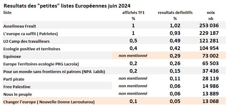Il était sans doute médiatiquement plus important de citer les 13 000 voix recueillies par la liste Larrouturou, nom connu, que de citer les 73 000 idéalistes … dont le but principal lors de ce vote était d’attirer l’attention et de faire monter la notoriété sur leur projet. Un peu raté, quoi ..