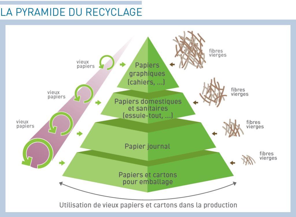 Bref, même si c’est une goutte d’eau dans l’océan, à l’avenir j’éviterai le papier coloré sauf si l’enjeu le justifie. Par ailleurs, j’éviterai aussi le beau papier blanc pur immaculé, qui, comme chacun ne le sait pas, est tout en haut de cette belle pyramide du recyclage ( merci Cobelpa) et nécessite des fibres vierges.