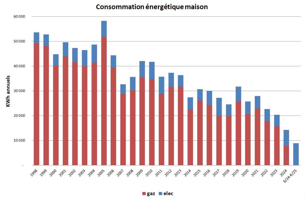 Un an après sa mise en service, les 50 000 KWh des années 2000 sont descendus à 9 000 KWh , et les 12 tonnes descendues en dessous de 100 kg. Rien, quoi.